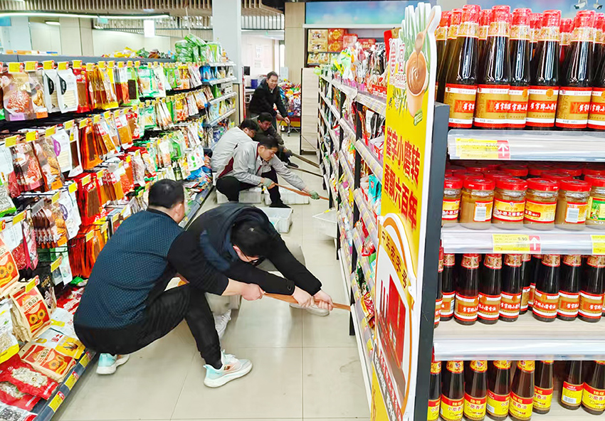 3月12日,經(jīng)營(yíng)管理板塊同事們齊心協(xié)力幫助民生店調(diào)整貨架,為顧客提供更舒適便捷的購物環(huán)境。